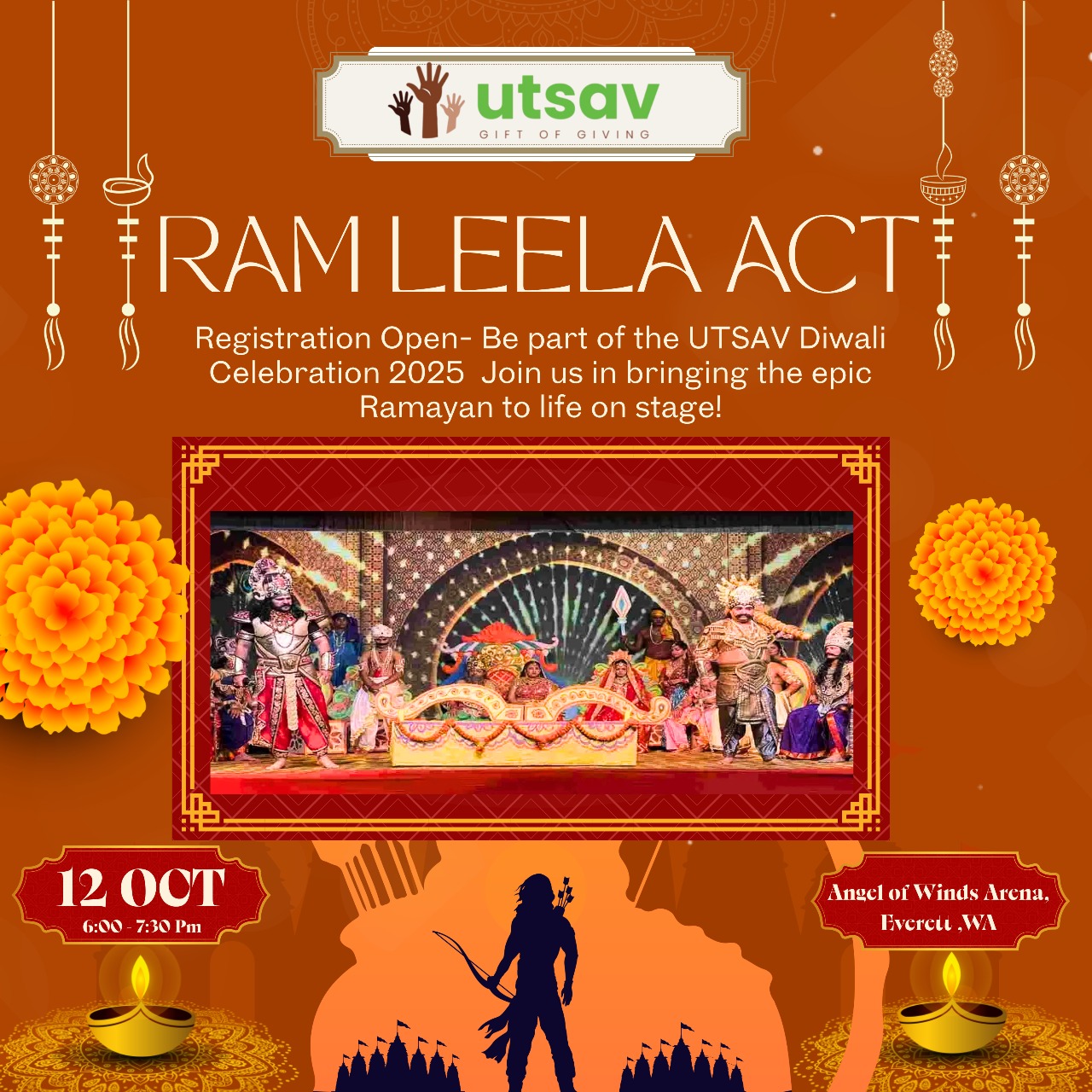 Join us on October 12, 2025, at the Angel of the Winds Arena, Everett, WA, for the region’s grand Diwali celebration.